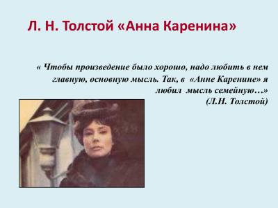 Произведения Л.Н.Толстого представляют собой художественное исследование жизни. Его исследования захватывают важнейшие области общественного и частного, быта эпохи. После окончания “Войны и Мира” Л.Н. Толстой продолжает интересоваться историей декабристов, затем, увлекаясь событиями начала XVlll века, думает писать исторический роман об эпохе Петра 1. И вот во время обдумывания различных творческих планов возникает перед взором писателя образ его будущей героини. “Это было так же, как теперь, - передает рассказ Л.Н. Толстого мемуарист Истомин, - после обеда я лежал один на этом диване и курил. Задумался ли я очень или боролся с дремотой, не знаю, но только вдруг передо мною промелькнул обнаженный женский локоть изящной аристократической руки. Я невольно начал вглядываться в видение. Появилось плечо, шея, и, наконец, целый образ красивой женщины в бальном костюме, как бы просительно вглядывавшейся в меня грустными глазами. Видение исчезло, но я уже не мог освободиться от его впечатления, оно преследовало меня и дни, и ночи, и, чтобы избавиться от него, я должен искать ему воплощения”. Писателя увлекла “мысль семейная”, и он поведал своей жене, что ему представляется тип женщины, замужней, из высшего общества, но потерявшей себя. “Он говорил, задача его сделать эту женщину только жалкой, и не виноватой…” - записала в своем дневнике С.А. Толстая. В 70-е годы Л.Н. Толстой все чаще и глубже стал задумываться над проблемами брака и семьи. Окружающая действительность давала немало материалов для размышления над вопросами жизни семейной. В январе 1872 года бросилась под поезд на станции Ясенки Анна Степановна Пирогова. Незаконная жена соседнего помещика Бибикова. Семья Толстых хорошо знала погибшую женщину, и ее трагическая судьба нашла отзвук в романе “Анна Каренина”. Роман «Анна Каренина» создавался в период 1873-1877 годов. С течением времени замысел претерпевал большие изменения. Менялся план романа, расширялись и усложнялись его сюжет и композиции, менялись герои и самые имена их. Анна Каренина, какой ее знают миллионы читателей, мало похожа на ее предшественницу из первоначальных редакций. От редакции к редакции Толстой духовно обогащал свою героиню и нравственно возвышал ее, делал ее все более привлекательной. Образы же ее мужа и Вронского (в первых вариантах он носил другую фамилию) изменялись в обратном направлении, т. е. духовный и нравственный уровень их снижался. Но при всех изменениях, внесенных Толстым в образ Анны Карениной, и в окончательном тексте Анна Каренина остается, по терминологии Толстого, одновременно и «потерявшей себя», и «невиноватой» женщиной. Она отступила от своих священных обязанностей матери и жены, но у нее другого выхода не было. Поведение своей героини Толстой оправдывает, но в то же время трагическая судьба ее оказывается неизбежной. Мир добра и красоты в «Анне Карениной» тесно переплетается с миром зла. Анна появляется в романе «ищущей и дающей счастье». Но на ее пути к счастью встают активные силы зла, под влиянием которых в конечном счете она и гибнет. Судьба Анны поэтому полна глубокого драматизма. Напряженным драматизмом проникнут и весь роман. Чувства матери и любящей женщины, испытываемые Анной, Толстой показывает как равноценные. Ее любовь и материнское чувство -два великих чувства – остаются д